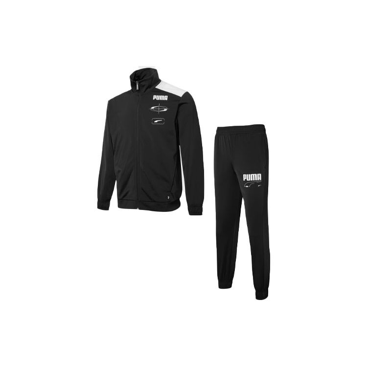 Puma Повседневный комплект из толстовки с капюшоном и брюк на молнии с принтом для мужчин, черный цвет 67122701