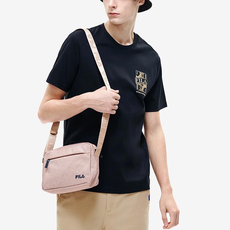 Fila Однотонная футболка с принтом логотипа бренда, спортивная, повседневная, с круглым вырезом, вязаная, с коротким рукавом, мужская, топы, черная F11M218104F-BK