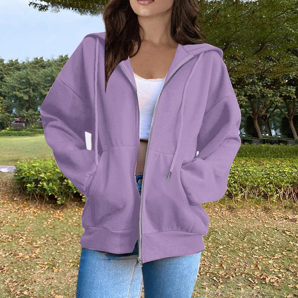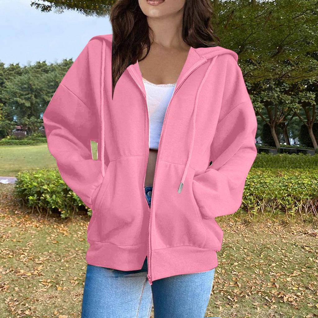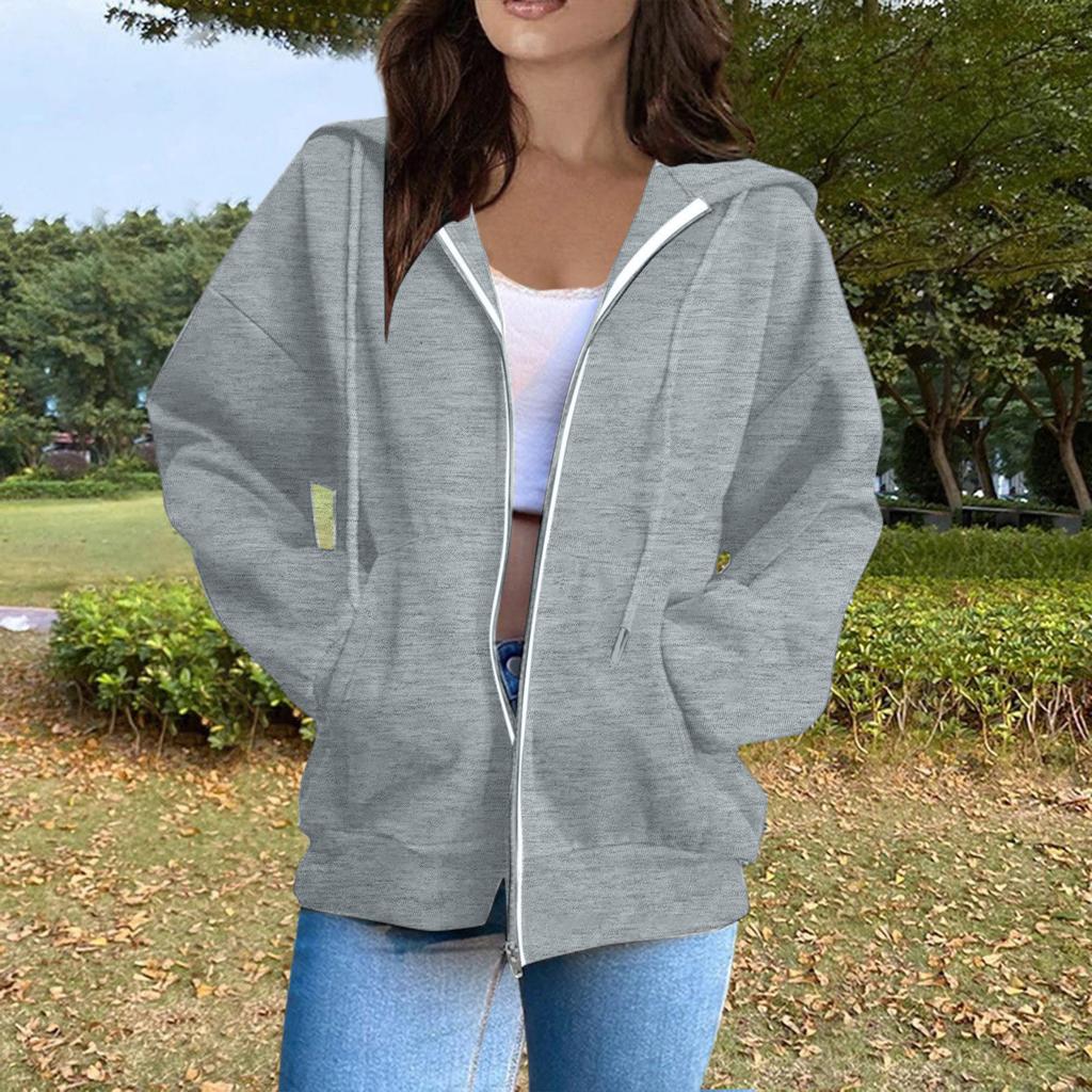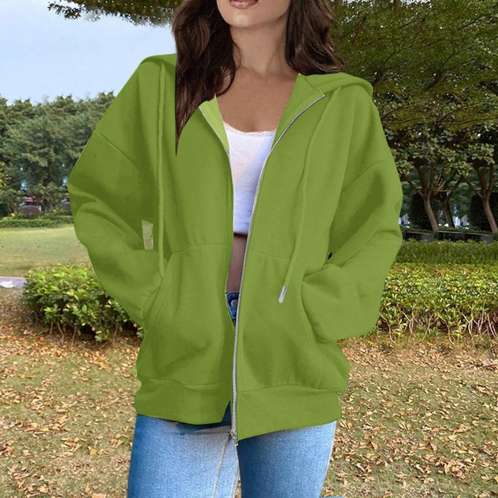 Женская повседневная модная однотонная толстовка с капюшоном и молнией с длинными рукавами