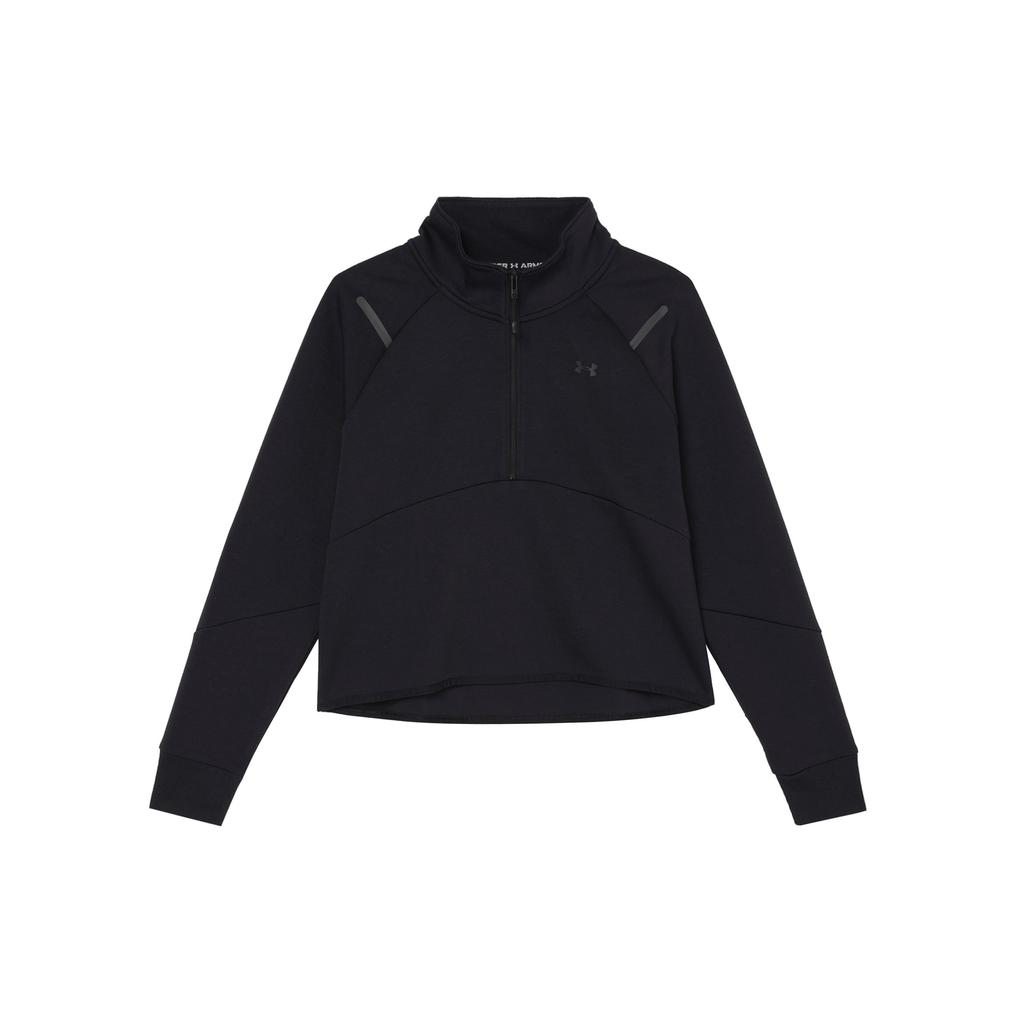 Under Armour Неостанавливаемая однотонная флисовая короткая спортивная толстовка с капюшоном на молнии 1/4, женские толстовки черного цвета 1379844-001