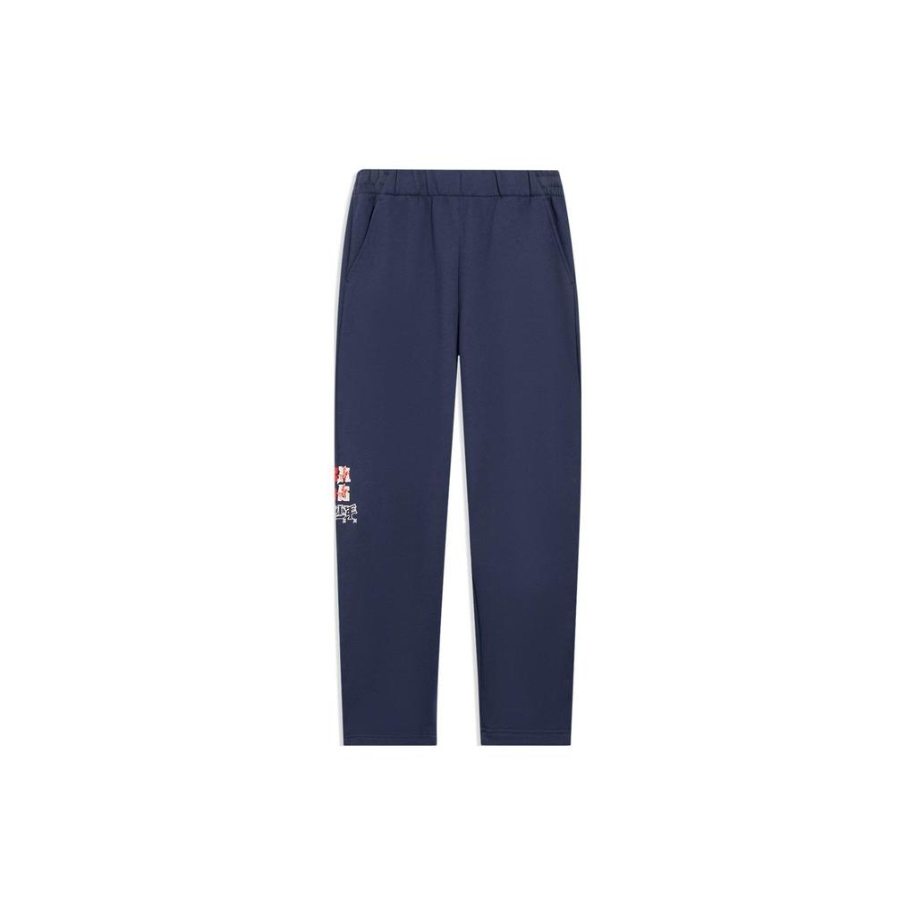 Спортивные брюки прямого покроя с логотипом Li Ning с высокой талией, мужские брюки темно-индиго цвета AKLSF27-1