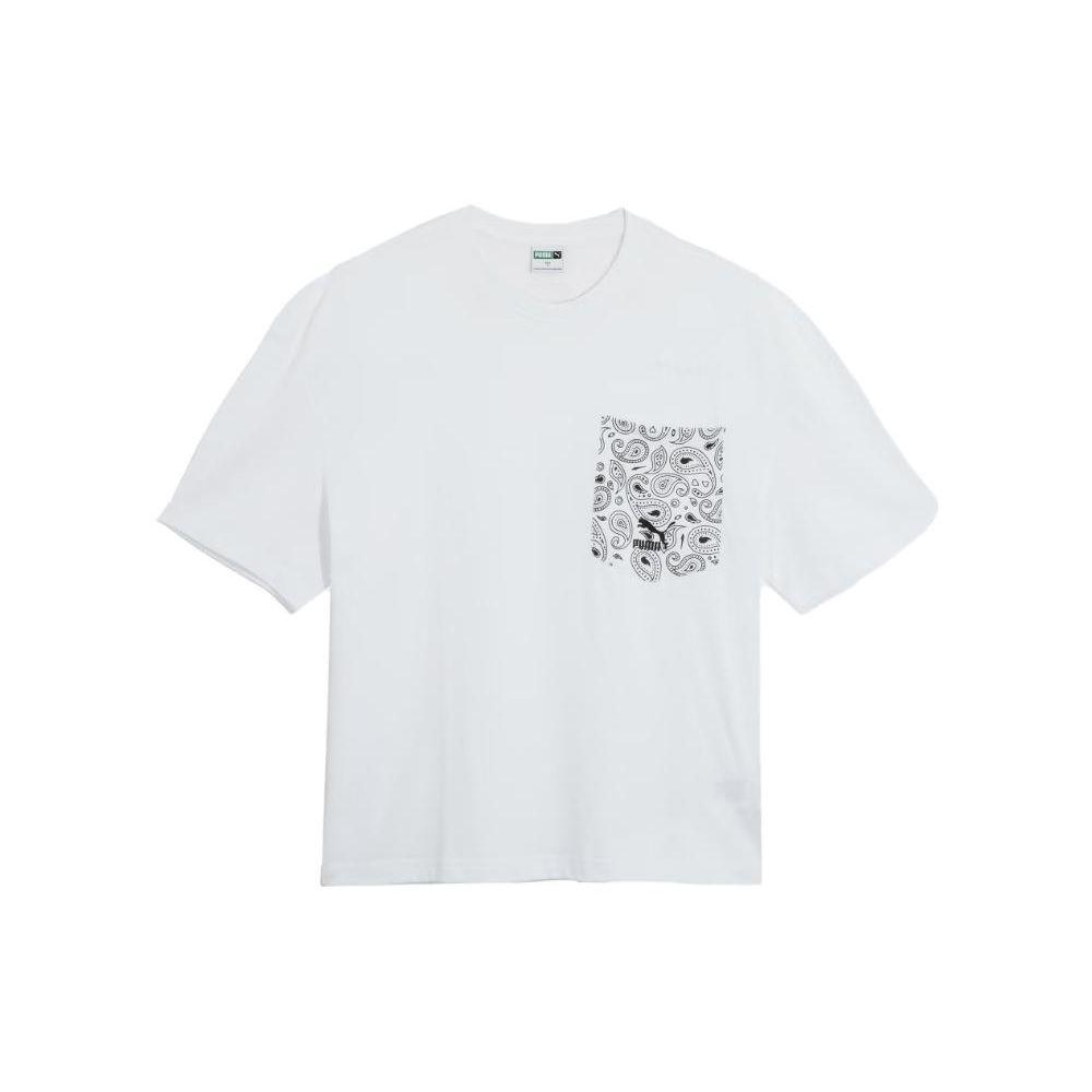 Puma Свободный дышащий свитер с круглым вырезом и психоделическим принтом, футболка с коротким рукавом в американском стиле, футболки унисекс, белый цвет 539502-02