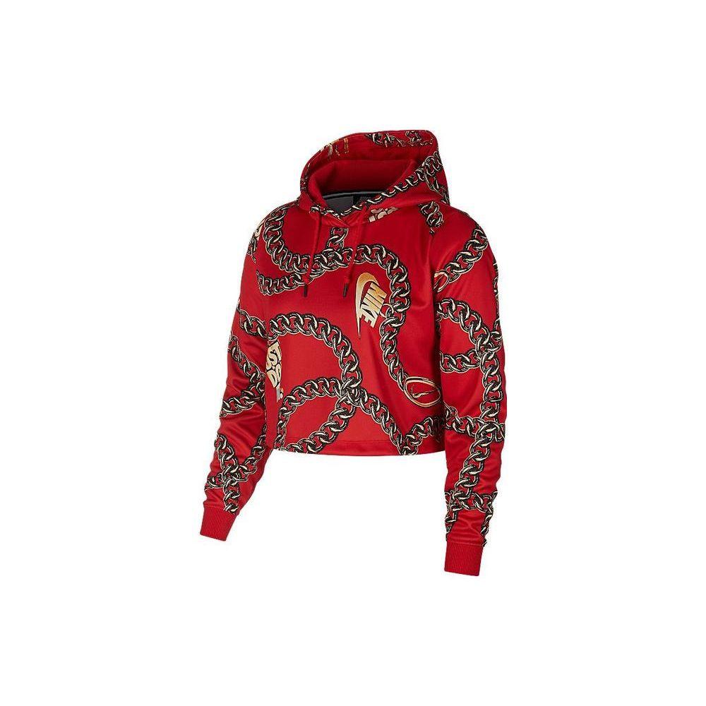 Nike Узор цепи полный принт толстовка женская толстовка с капюшоном красный CJ6306-657