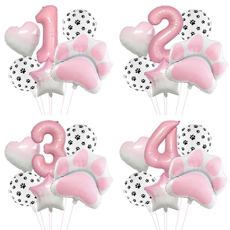 Pink Dog'S Paw Digital Balloon Set Animal Theme Birthday Party Aluminum Film Balloon Party Arrangement Decorative Balloon