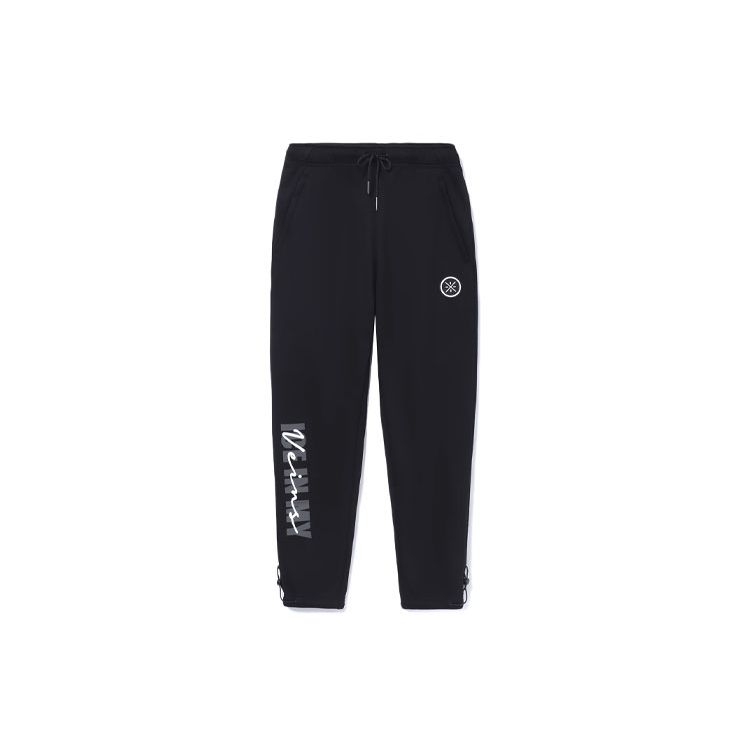 Штаны мужские спортивные трикотажные с нашивкой-логотипом Li Ning на флисовой подкладке, черные AKLR823-1