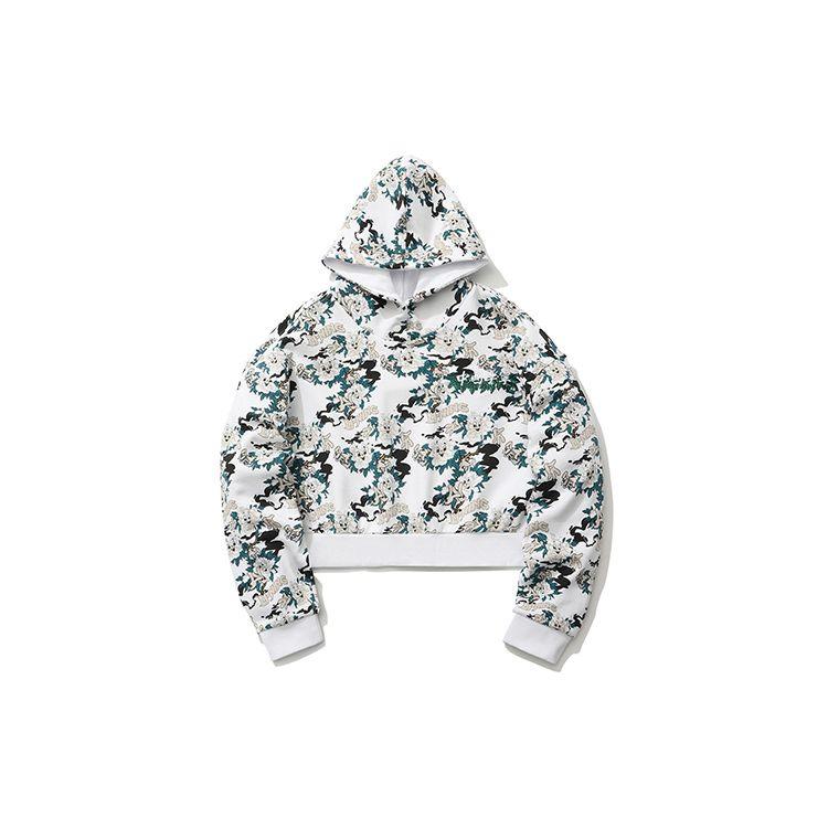 Li Ning X OG Slick Collaboration Повседневный свободный принтованный пуловер с длинным рукавом Женская толстовка Белая AWDR238-1