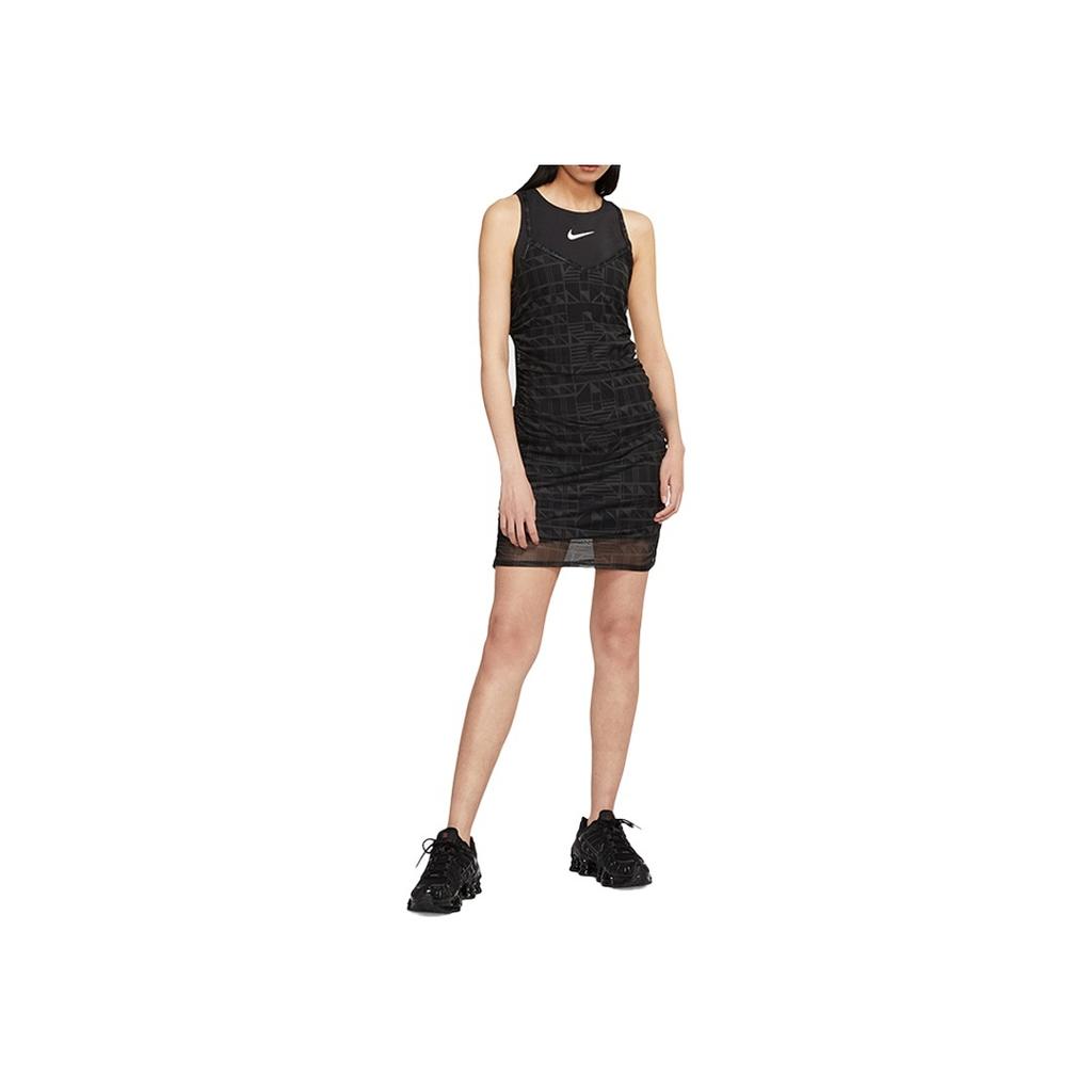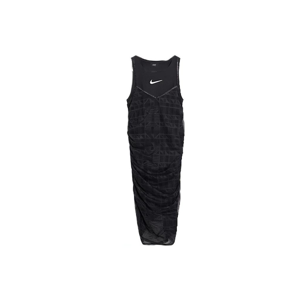 Nike Платье без рукавов с принтом логотипа, повседневное, спортивное, с круглым вырезом, влагоотводящее, женские платья, черное CJ3001-010