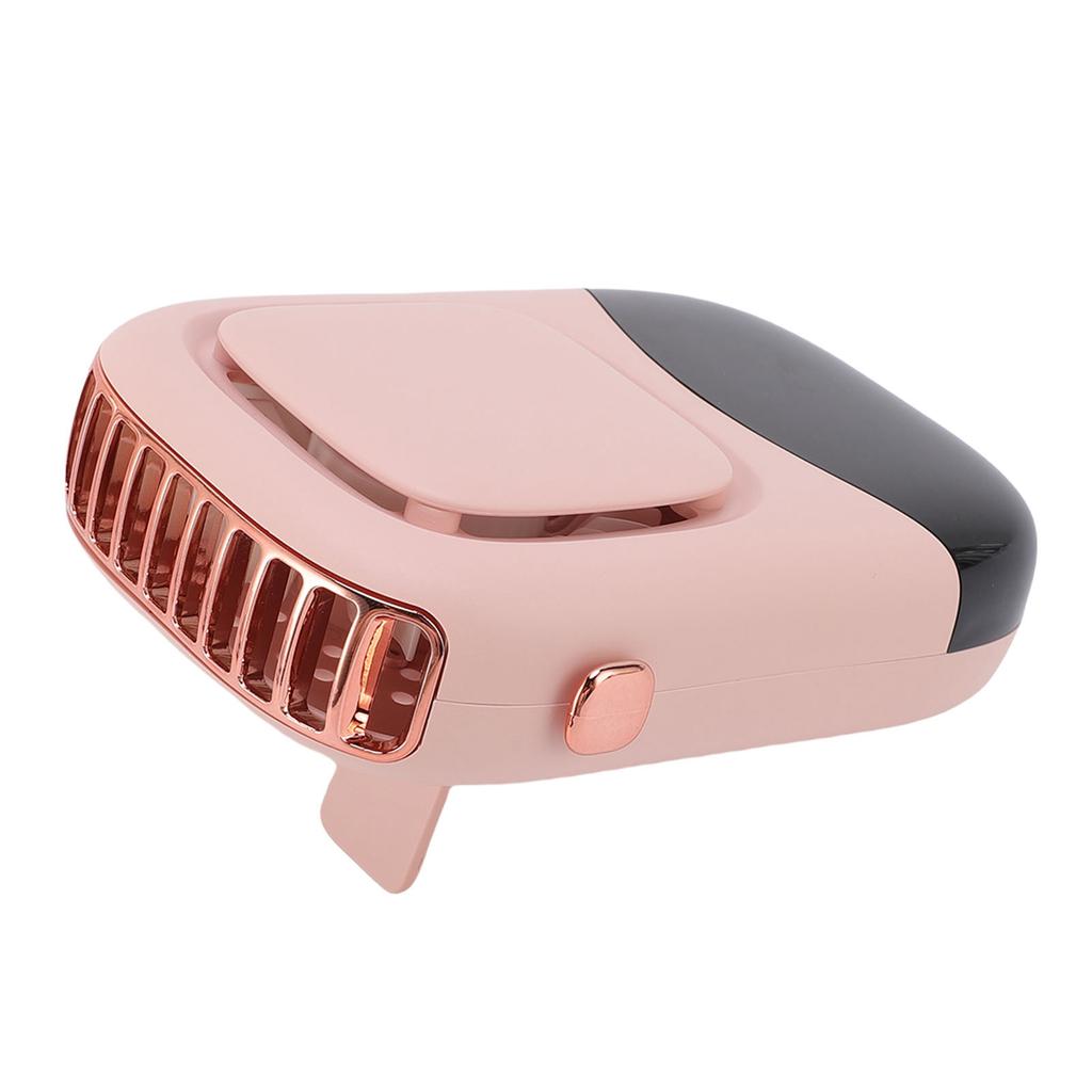 Подвесной вентилятор на шею Мощный Долгое время работы от аккумулятора USB Перезаряжаемый вентилятор с шейным ремешком для путешествий на открытом воздухе Розоватый