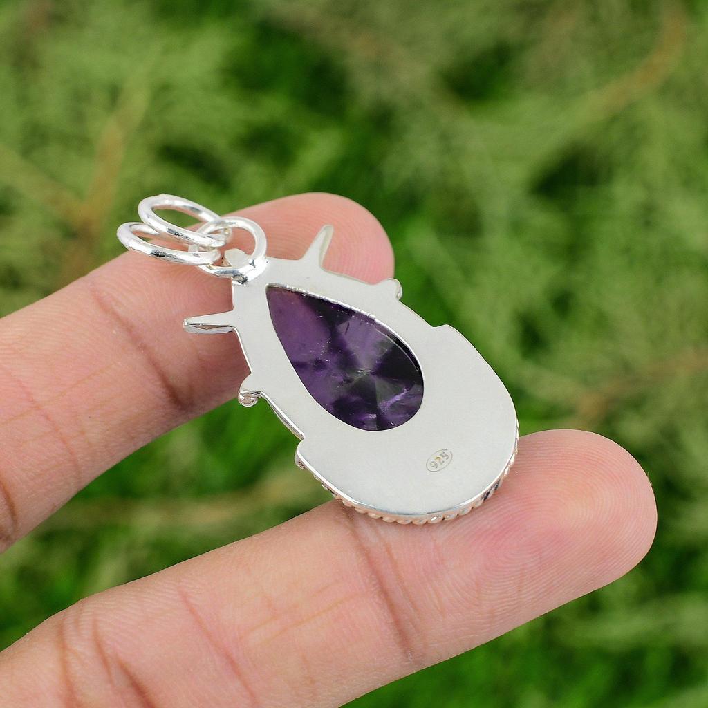 День Дочерей Распродажа Звездный Аметист Камень Стерлинговое Серебро Арт Деко Ручная Работа Подвеска