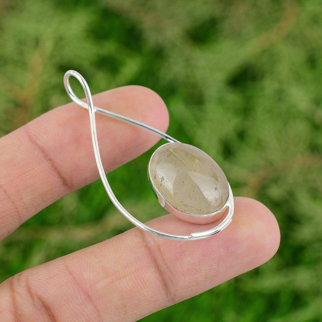 День Дочери Распродажа Стерлинговое Серебро Натуральный Золотистый Рутил Безель Подвеска Ювелирное Изделие