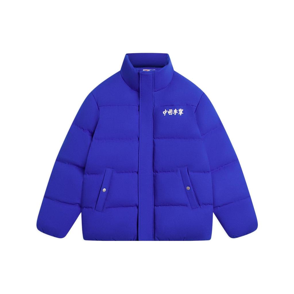 Li Ning China Series свободный пуховик с принтом китайских иероглифов сзади унисекс верхняя одежда синего цвета AYMS159-3