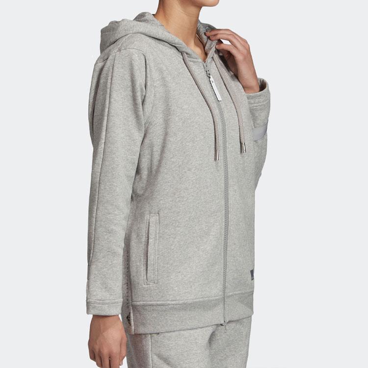 Adidas Однотонный спортивный кардиган с капюшоном и логотипом, женские толстовки светло-серого цвета EA2545