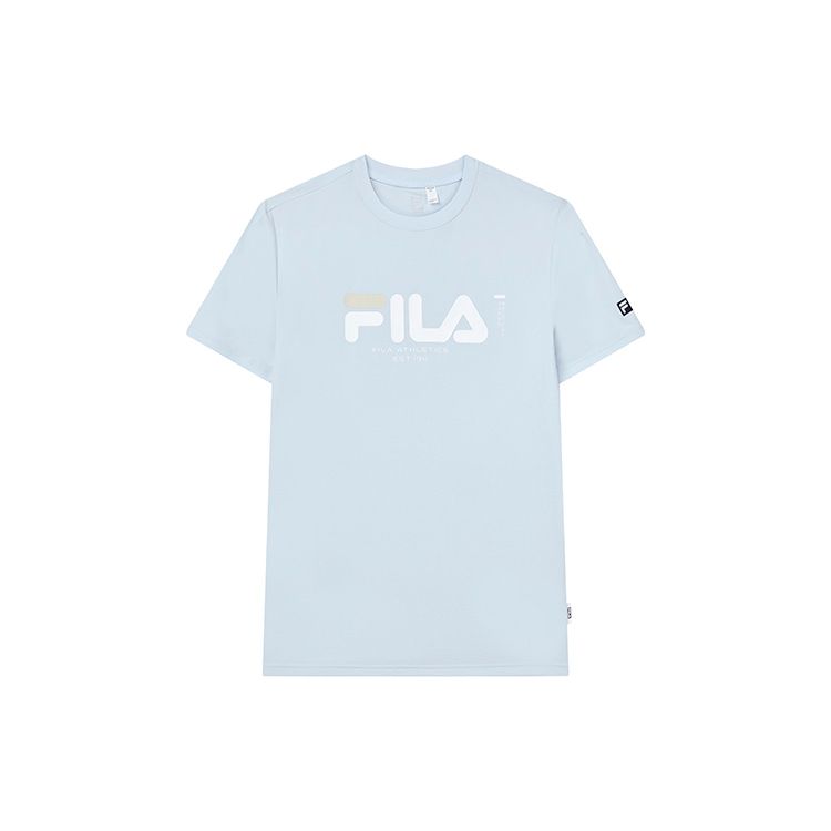 Fila Athletics Fitness Однотонная футболка с логотипом, вязаная, влагоотводящая, быстросохнущая, с коротким рукавом, мужская, топы, светло-дымчато-голубая, A11M221109F-BU