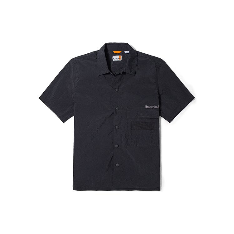 Timberland Сплошной логотип Повседневная модная свободная дышащая рубашка с карманом с коротким рукавом Мужские рубашки черного цвета A61S1-001
