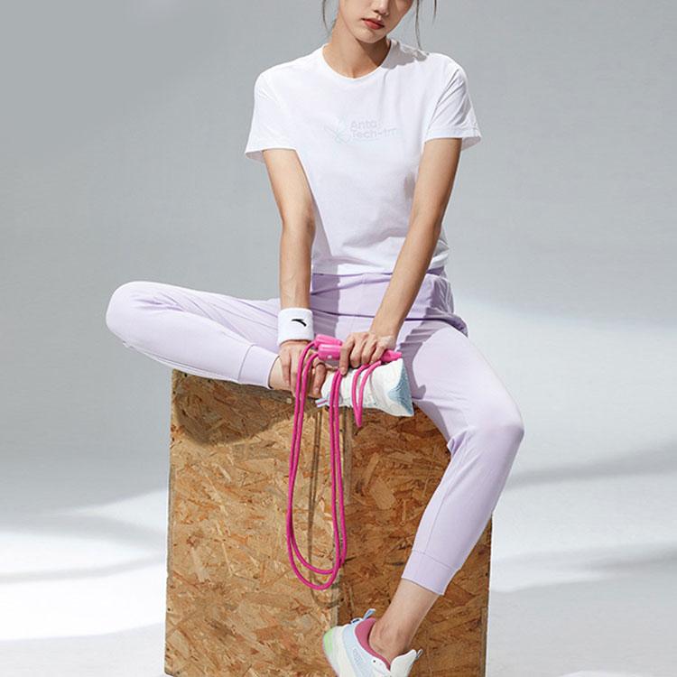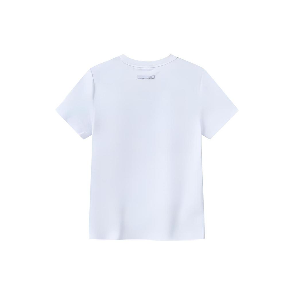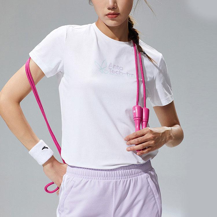 Anta Однотонная футболка с круглым вырезом и коротким рукавом с буквенным принтом, женские топы, белоснежная 162127134-1