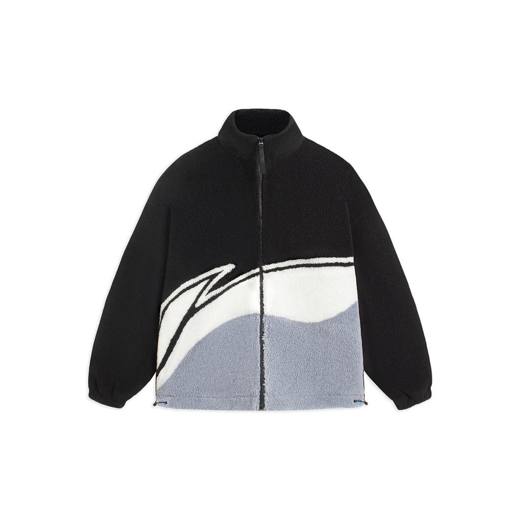 Повседневная куртка из овечьего флиса с длинными рукавами и логотипом Li Ning Color Block, хлопковая куртка унисекс, черная AJMS107-1