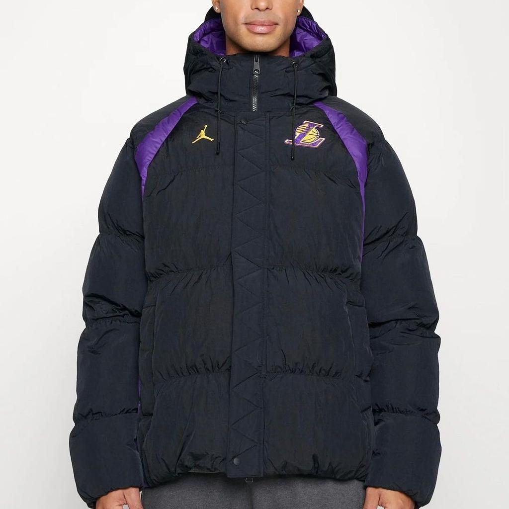 Jordan Мужская куртка из хлопка с капюшоном и вышитым логотипом NBA Los Angeles Lakers Color Block Letter, черная DR2445-010
