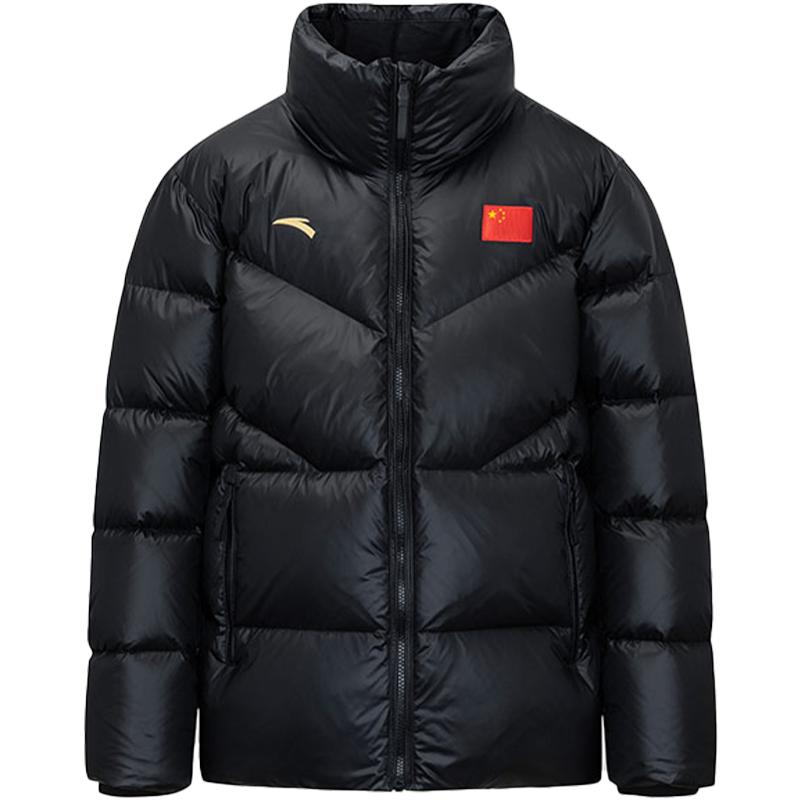 Anta Однотонный спортивный теплый пуховик с воротником-стойкой, женская верхняя одежда, черный цвет 462240106-1