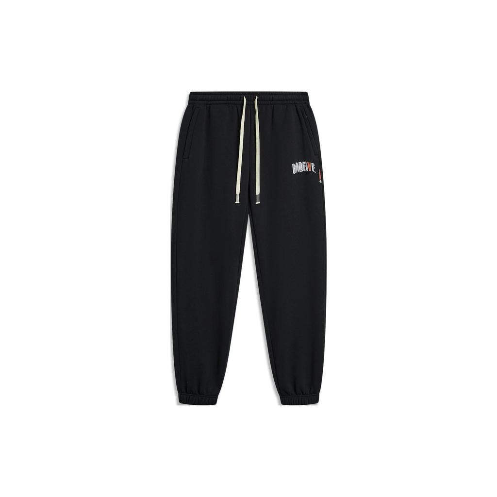 Штаны мужские спортивные из флиса с манжетами Li Ning Badfive Solid со средней посадкой, черные AKLT879-6