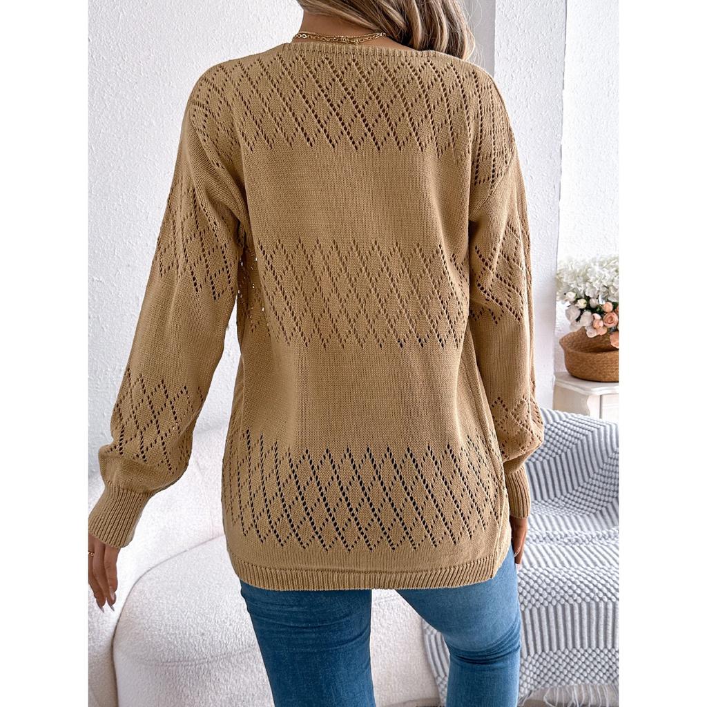 QICED Осень и Зима Повседневный Однотонный Ажурный Кардиган Свитер с Длинным Рукавом Фонарик Пальто Миди