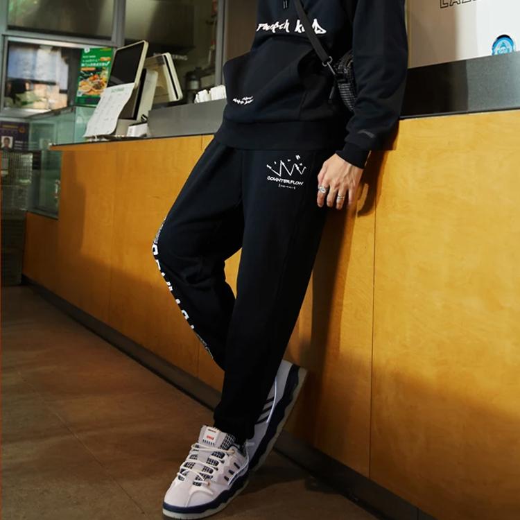 Мужские спортивные штаны Li Ning Cf Mars с однотонным логотипом и буквенным принтом, свободные, с манжетами, черные AKLRC07-2