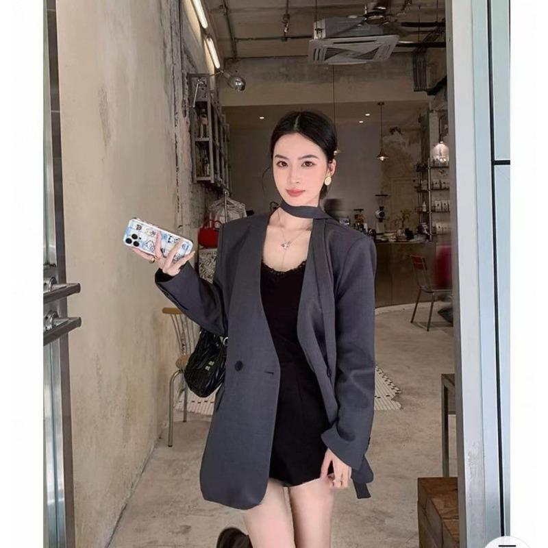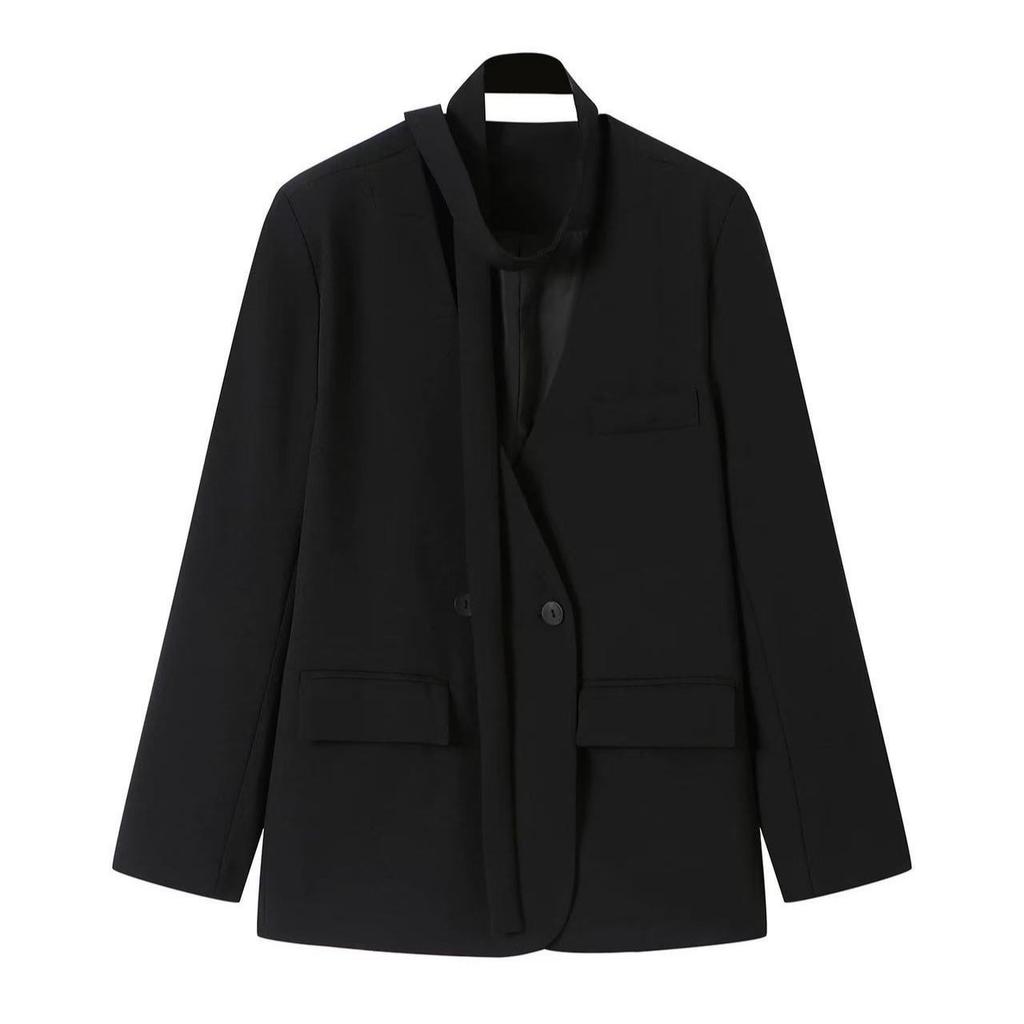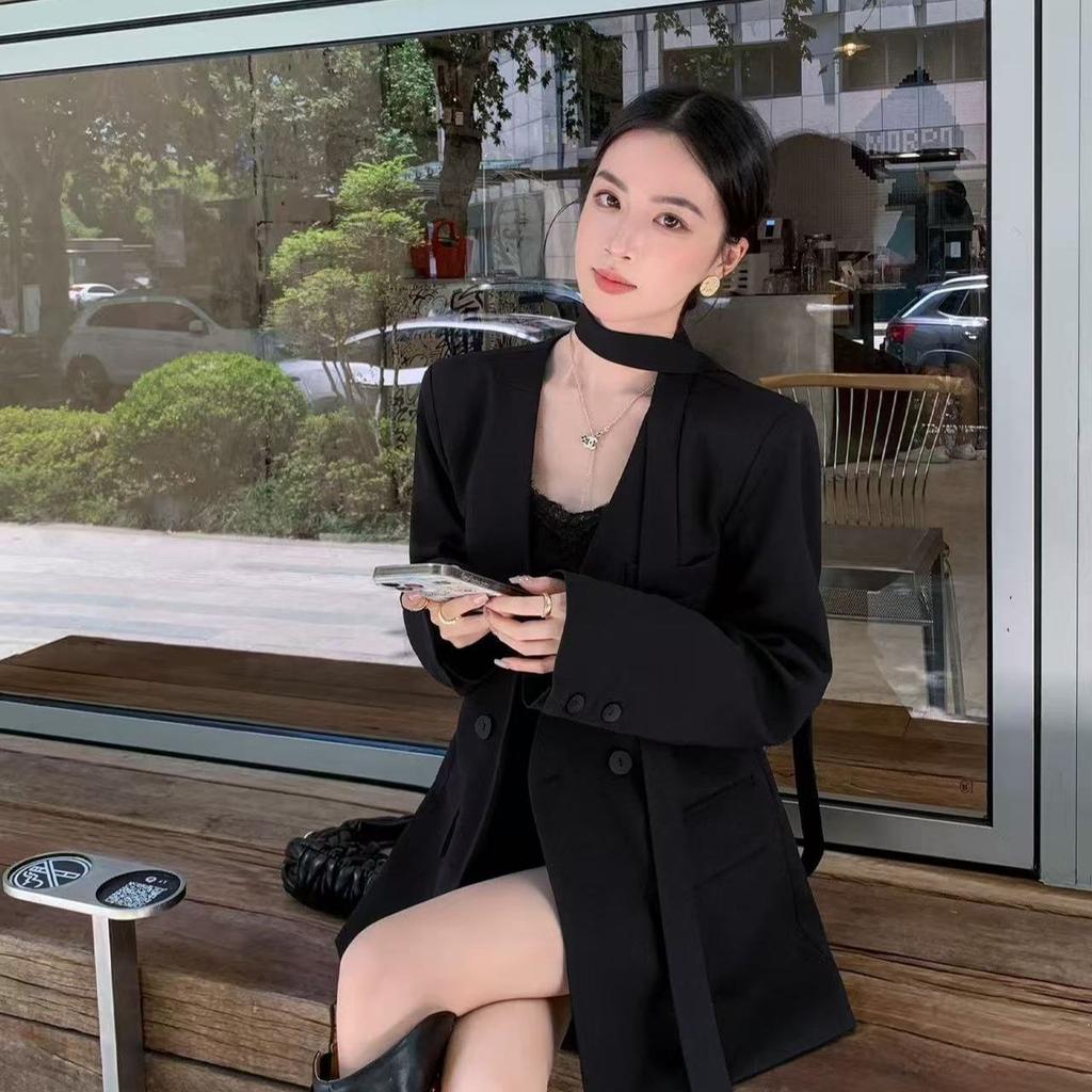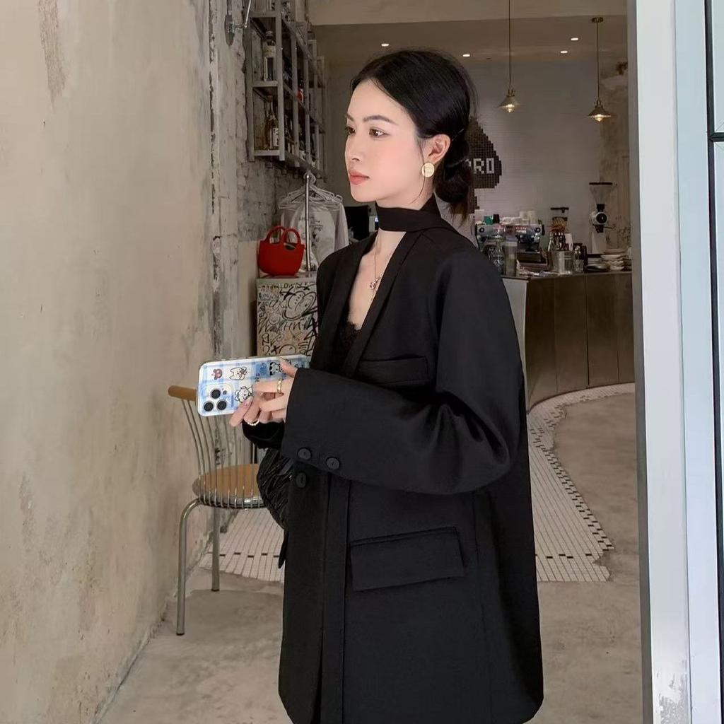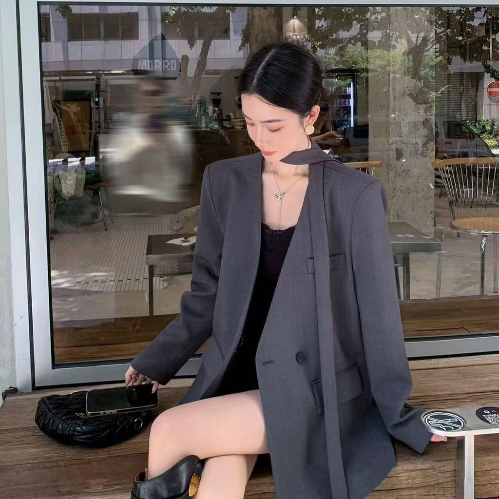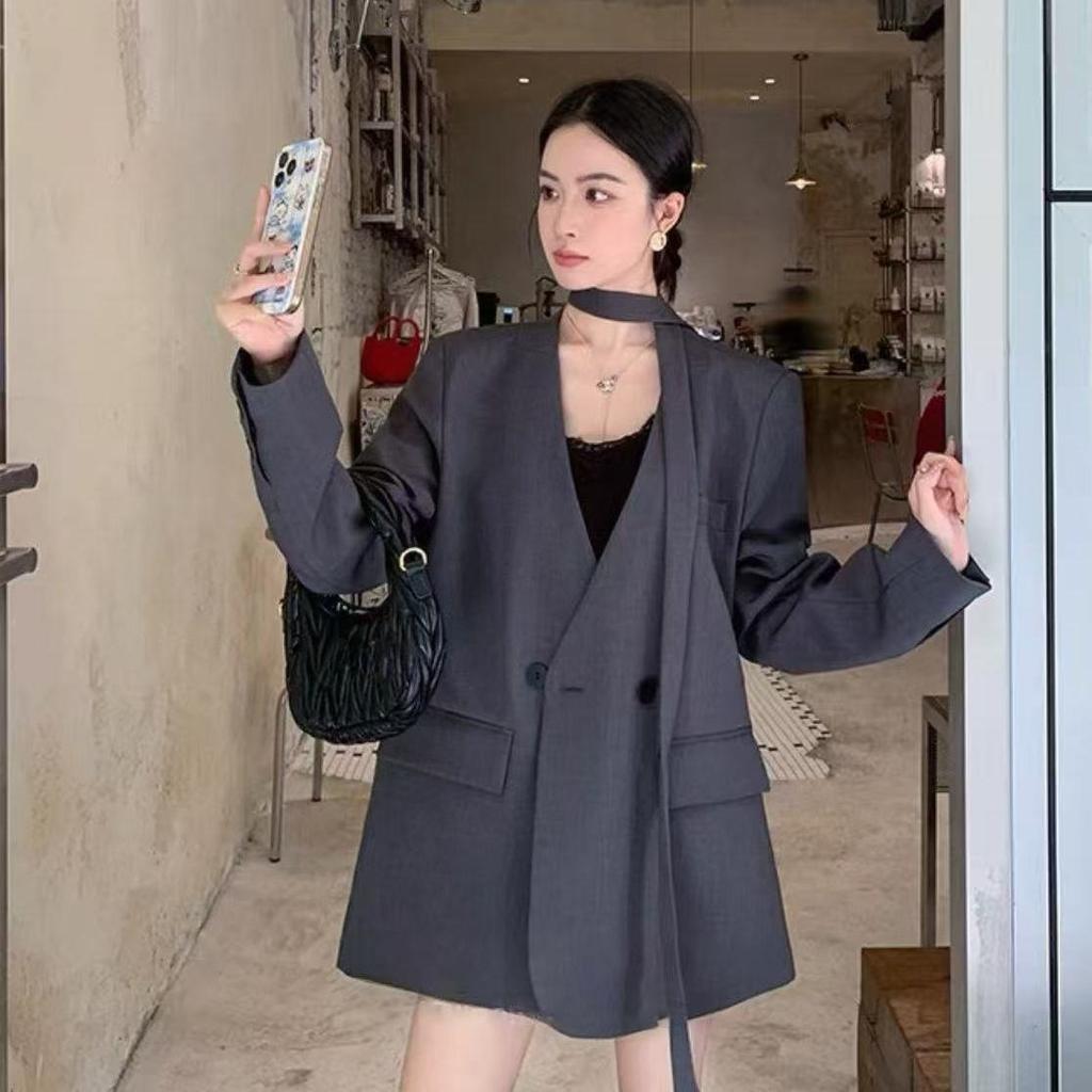 Элегантный повседневный блейзер с поясом для женщин, весна-осень, свободного кроя, с рукавами на завязках, приталенный офисный костюм