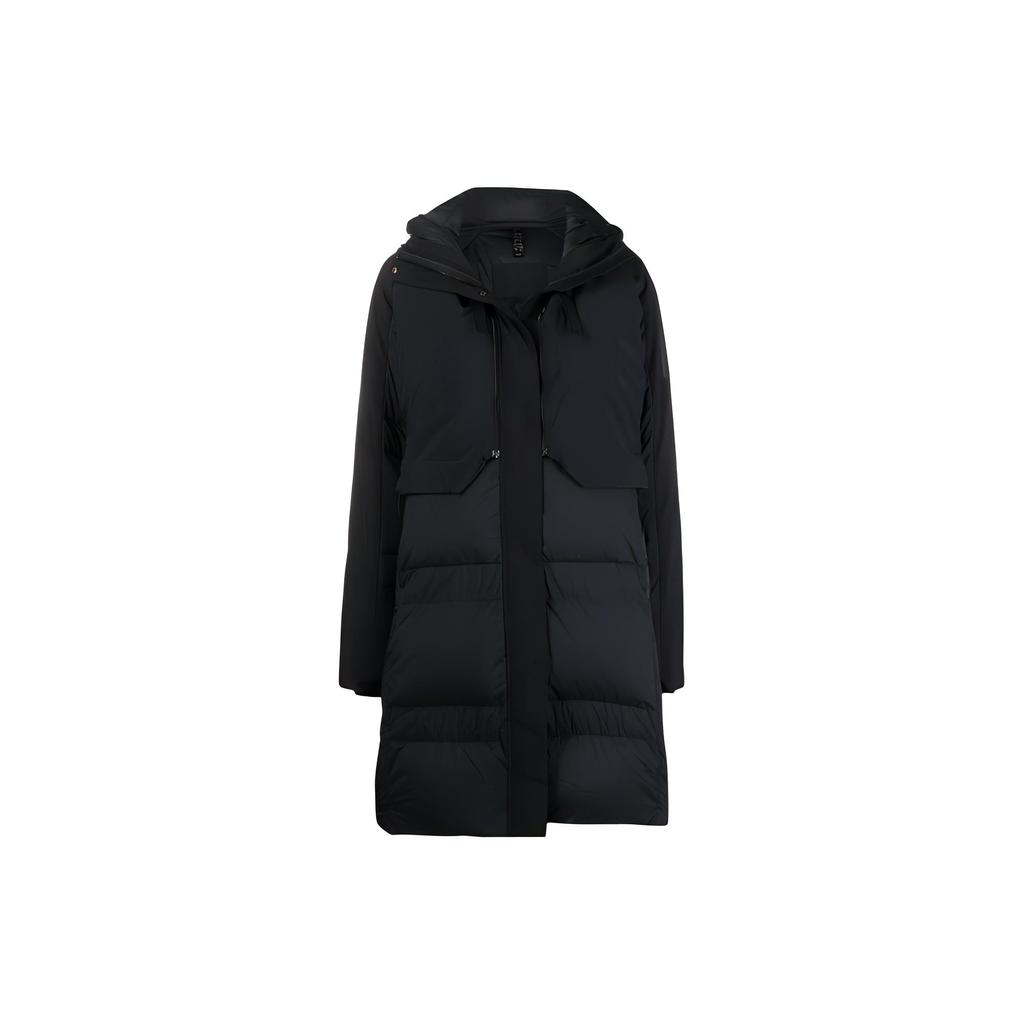 Adidas Однотонный пуховик с капюшоном и принтом логотипа средней длины, женские пальто черного цвета GV1846