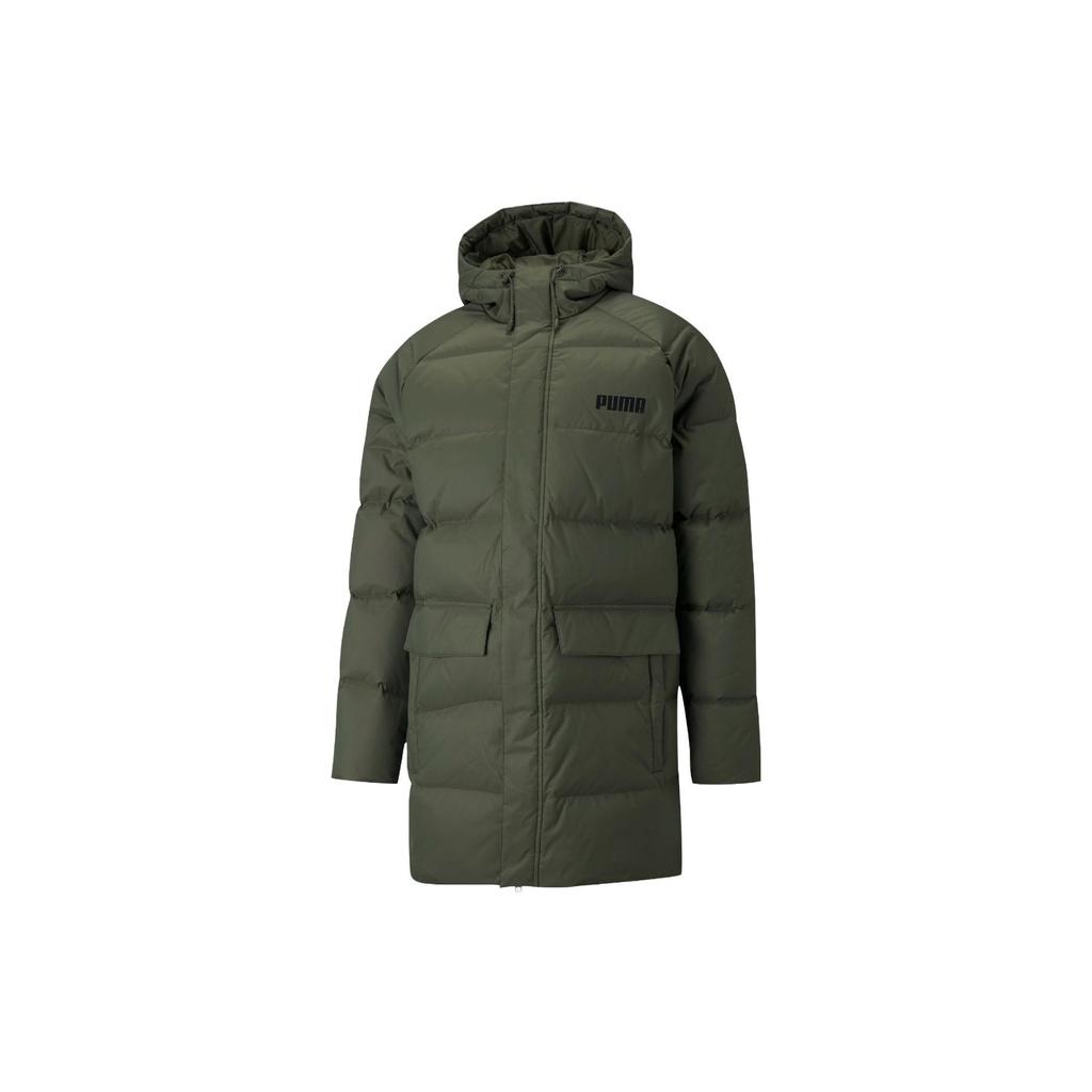 Puma Пуховик средней длины с логотипом, однотонный, мужская верхняя одежда, виноградно-зеленый 846326-44
