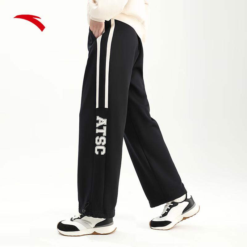 Anta Полосатые флисовые брюки средней посадки с буквами, прямые повседневные женские брюки, базовые, черные 162348305-2