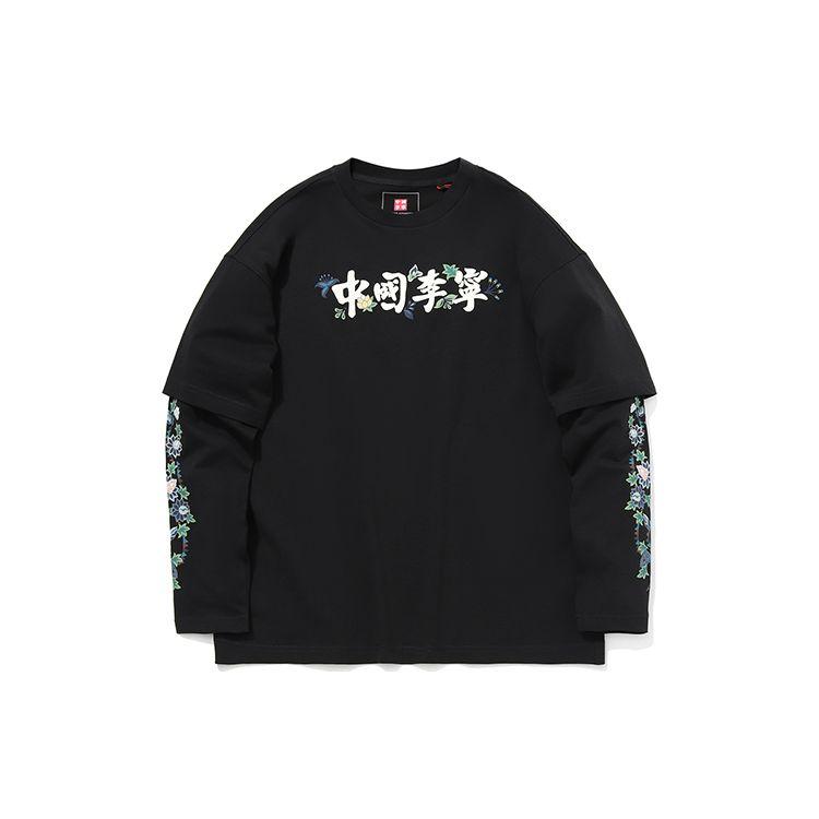 Li Ning AW21 Paris Fashion Week Series Повседневная свободная толстовка с длинным рукавом и круглым вырезом Мужская толстовка Стандарт-черный AHSQ631-3