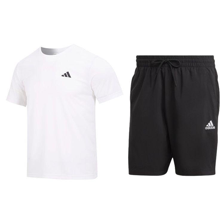 Adidas Пуловер с круглым вырезом и принтом логотипа, короткий рукав, однотонные шорты со шнурком и средней талией, повседневный спортивный комплект, мужские комплекты HR8728+IC9392
