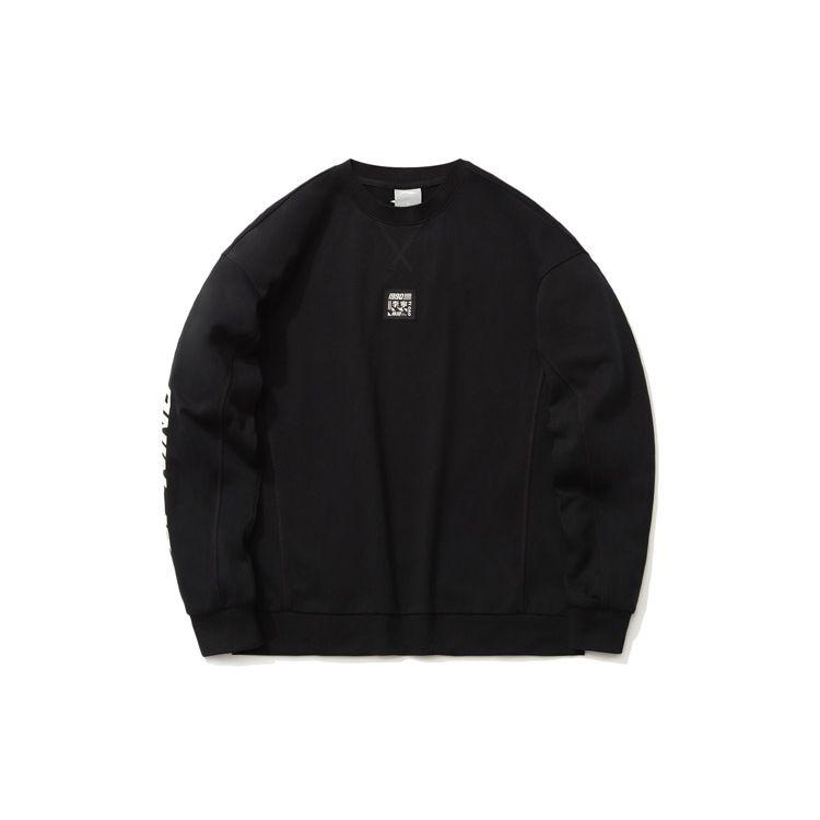 Li Ning Sports Casual Printed Crew Neck Pullover Sweatshirt Men Sweatshirt Black AWDR027-3