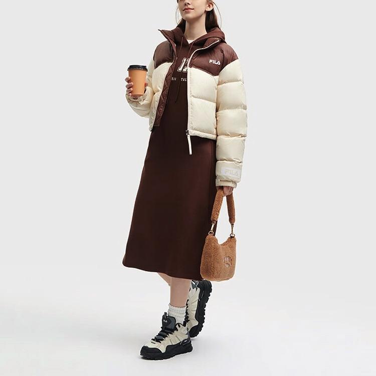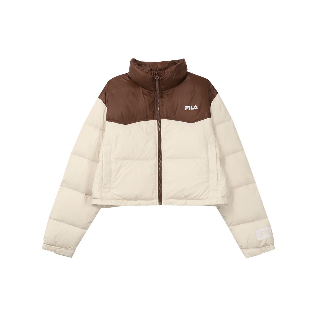 Fila Куртка пуховая женская верхняя одежда бежевая с логотипом в стиле колор-блок, на молнии, со стойкой, с длинными рукавами F51W349901F-BG