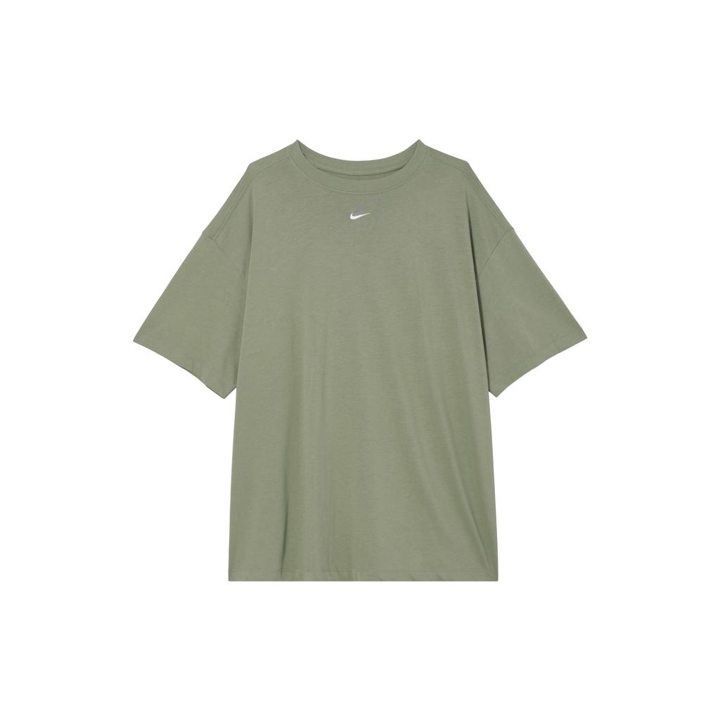 Nike Спортивная одежда Essentials, свободная однотонная футболка с круглым вырезом, повседневная, с принтом, коротким рукавом, спущенными плечами, женские топы, масляно-зеленый DX7911-386