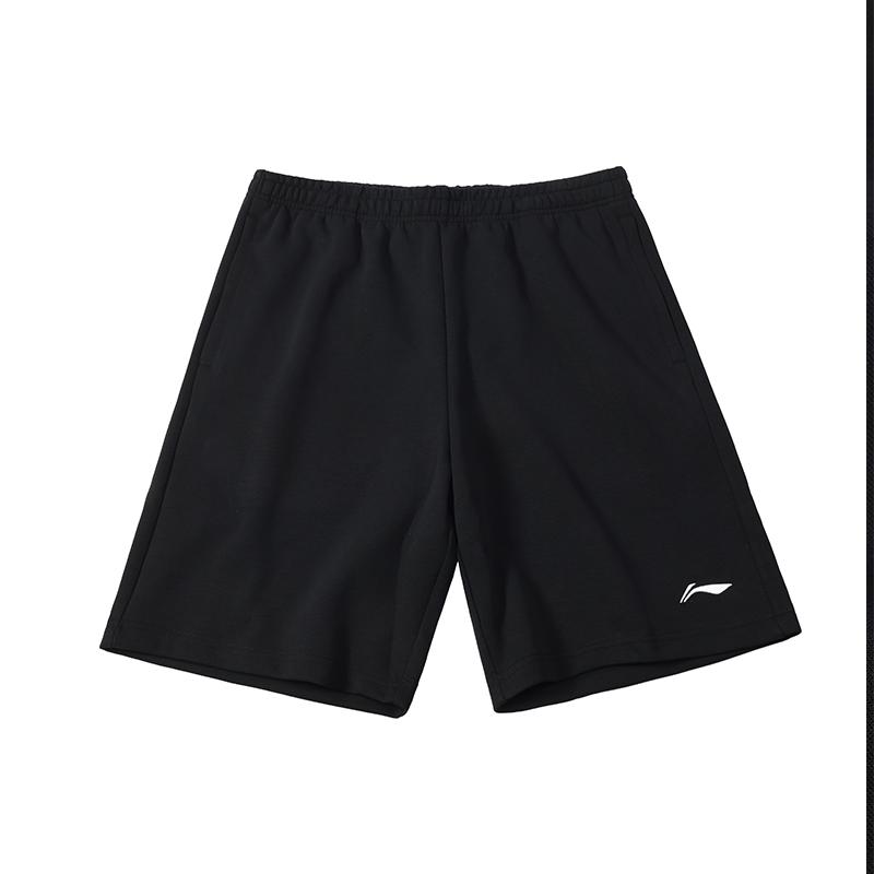 Li-Ning Вышитый логотип, трикотажные однотонные свободные спортивные шорты с пятью точками, мужские шорты, черные AKST453-1