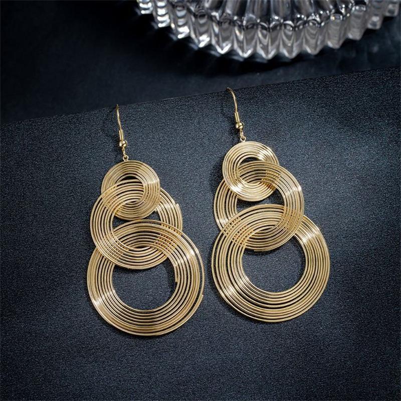 Панк-золотой цвет большие геометрические 3 круга длинные висячие серьги для женщин богемная вечеринка преувеличенные Brincos модные украшения