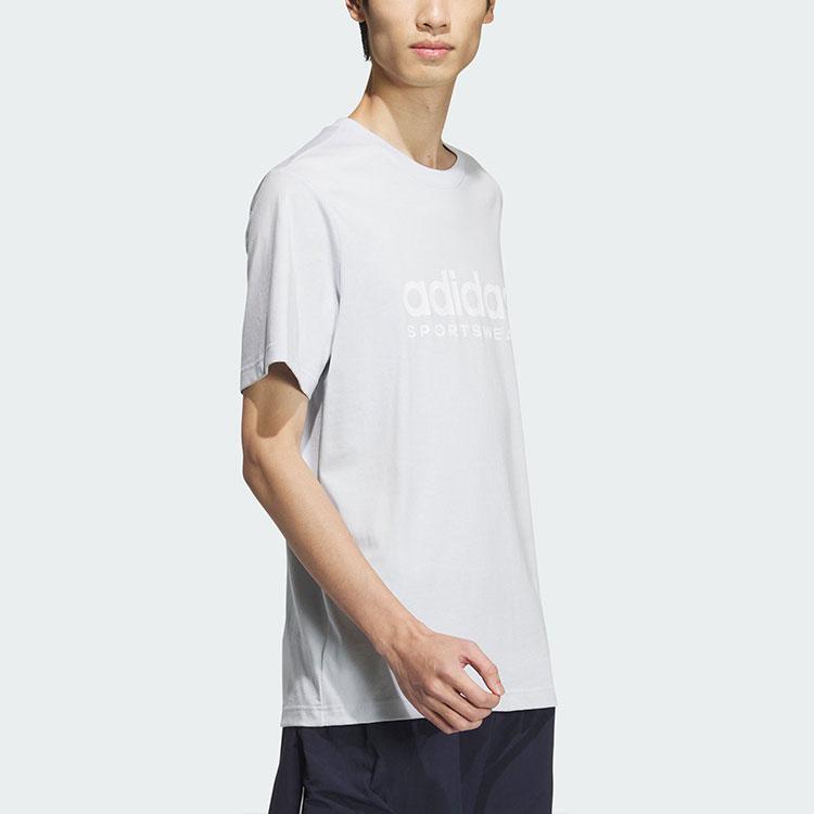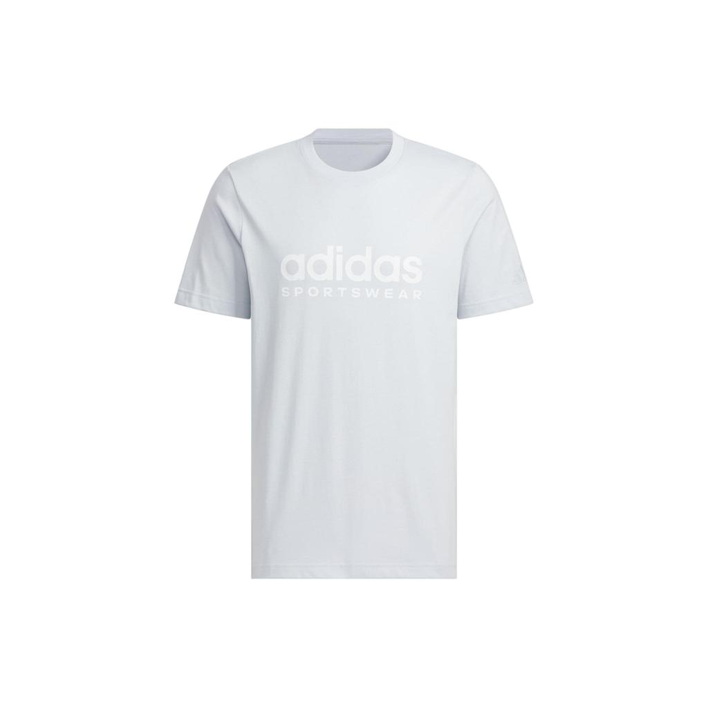 Adidas Футболка унисекс с коротким рукавом и круглым вырезом, дышащая, с принтом букв, светло-голубая JI9071
