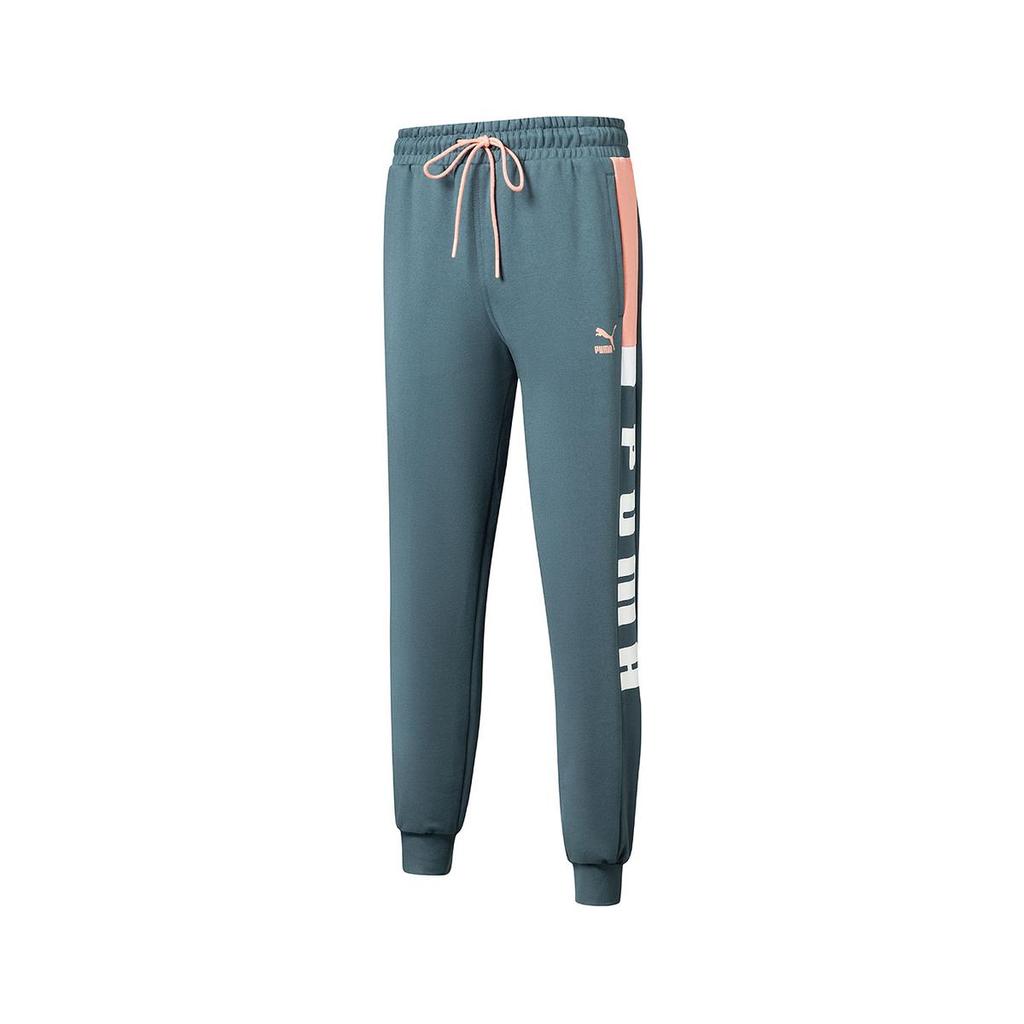Puma Трикотажные спортивные брюки с боковым принтом и манжетами на завязках, мужские плавки, темно-синие 536789-42