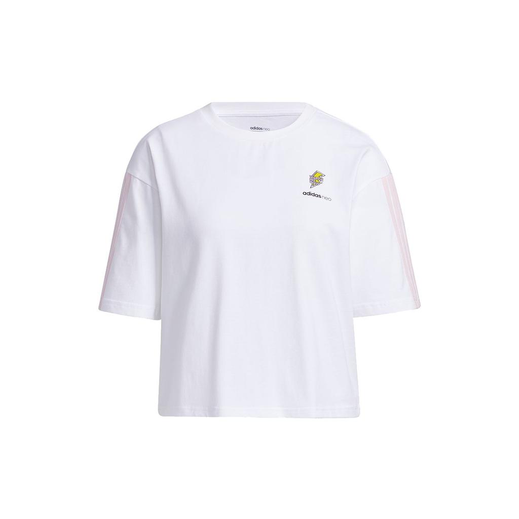 Adidas Футболка Neo W Fav May Tee 1, повседневная, спортивная, в полоску, с круглым вырезом и коротким рукавом, женские топы, белая GP7135