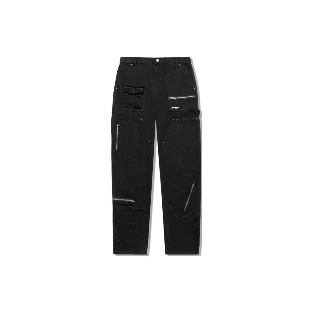 Li Ning X Pleasures Floral Label Прямые свободные повседневные брюки мужские брюки черные AKXT779-1