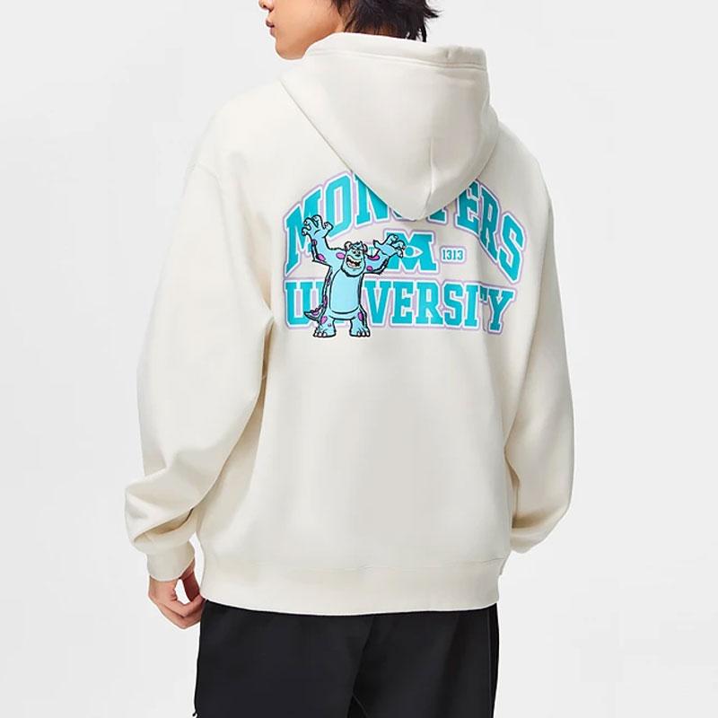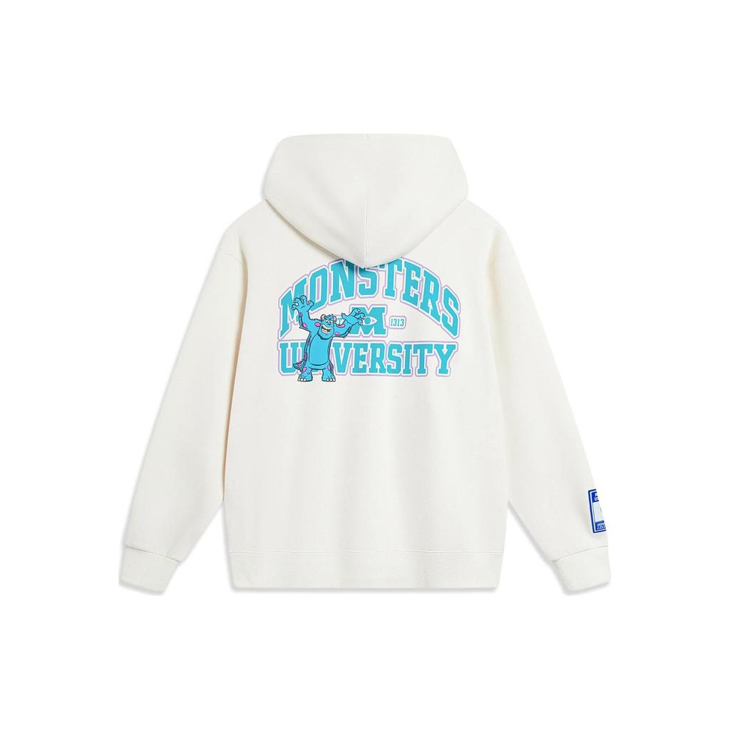 Li-Ning Коллаборация Disney Серия «Университет монстров» Письмо Мультяшный принт Флис Теплый свободный свитер с капюшоном Унисекс толстовки Off-White AWDT815-2