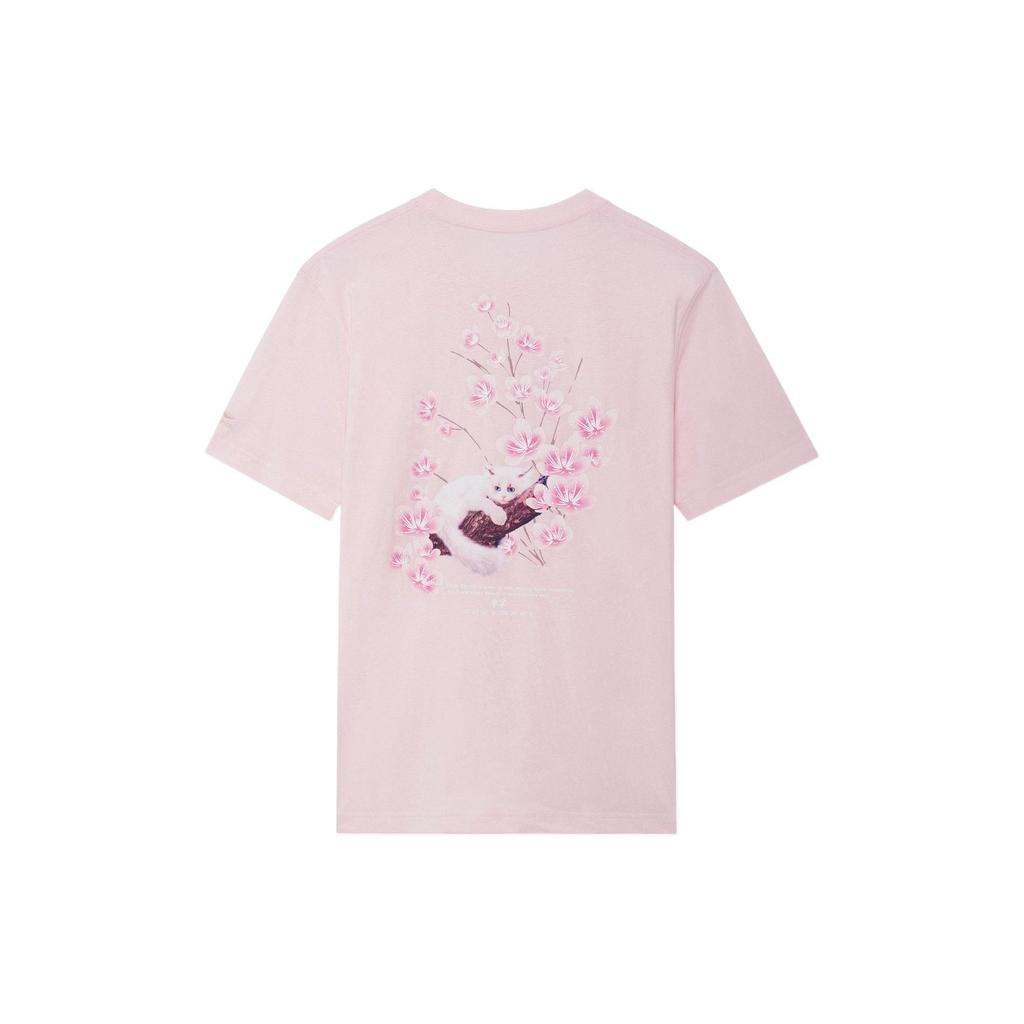 Li Ning SS22 Sakura Series однотонная повседневная футболка с круглым вырезом и коротким рукавом унисекс-топы светло-розового цвета AHSS917-2