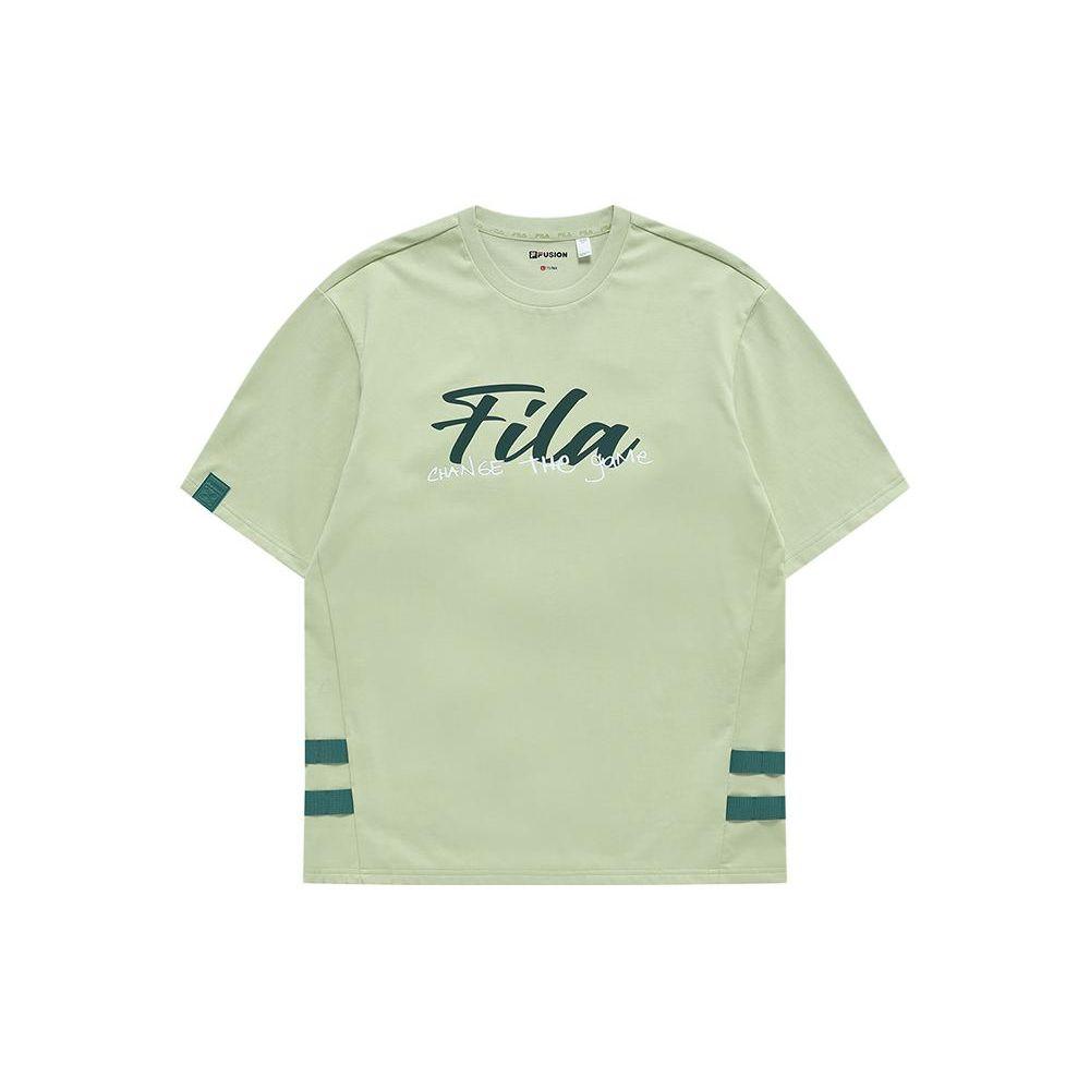 Fila Футболка мужская с принтом логотипа бренда в виде букв, с круглым вырезом, в американском винтажном стиле, с коротким рукавом, топы, винтажно-зеленый T11M326102F-GN