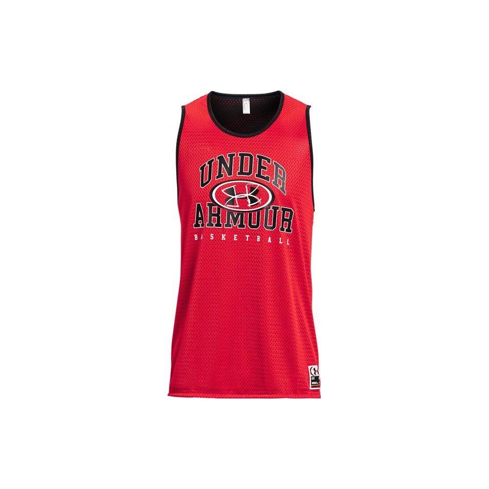Under Armour Двусторонний спортивный бег фитнес-тренинг с принтом логотипа и букв дышащий круглый вырез без рукавов баскетбольный жилет мужские топы красный 1377310-600