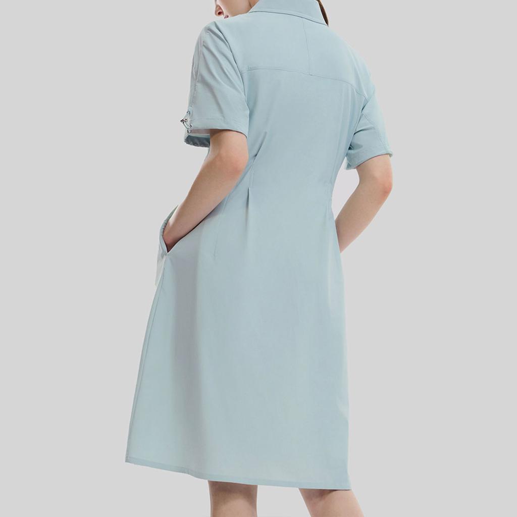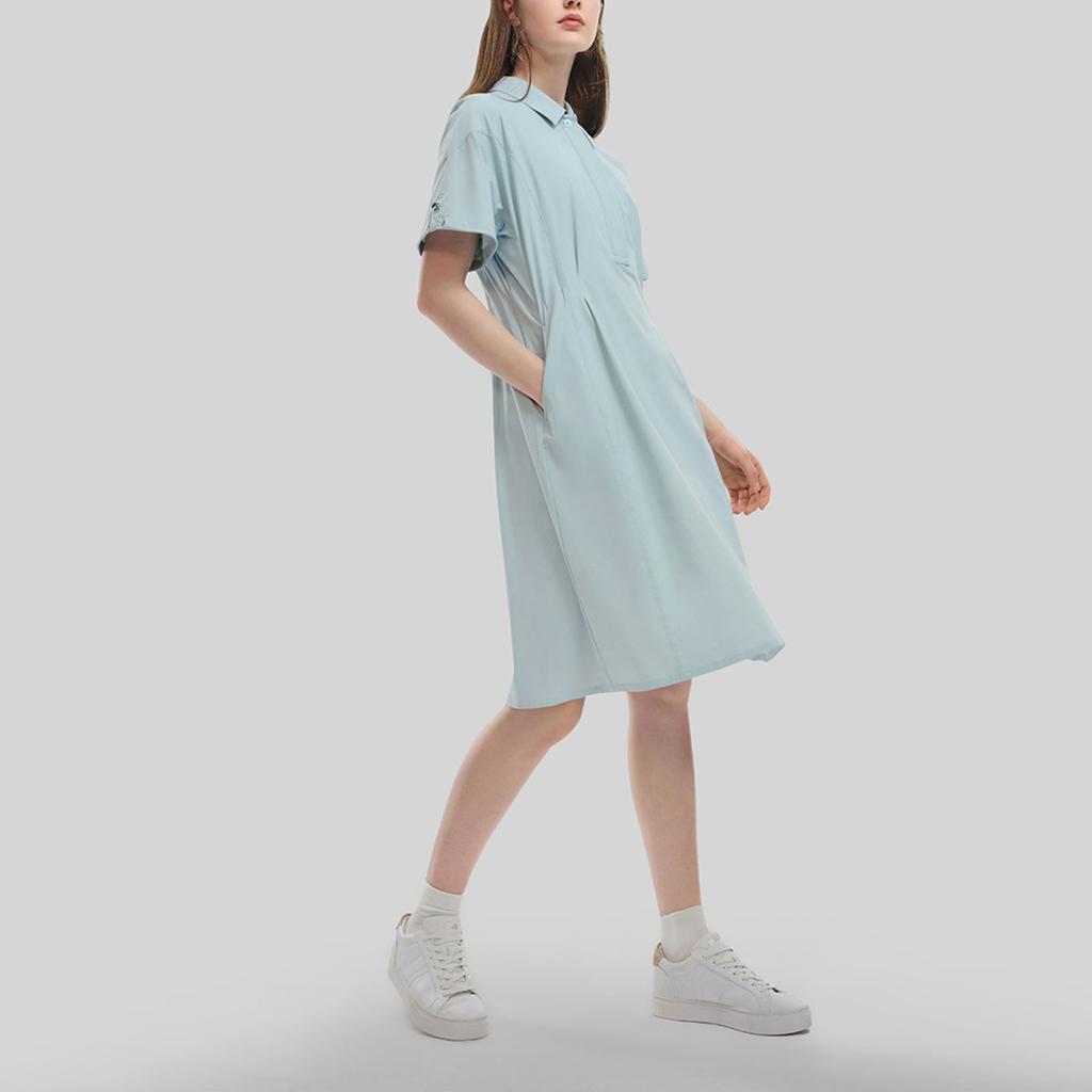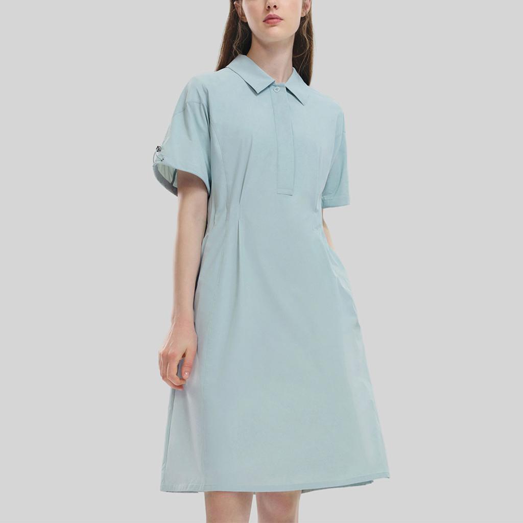 Fila Изумрудная серия Однотонное Модное Свободное Повседневное Платье с коротким рукавом и воротником поло Женские платья Пробуждающий мечты зеленый F11W334303ALG