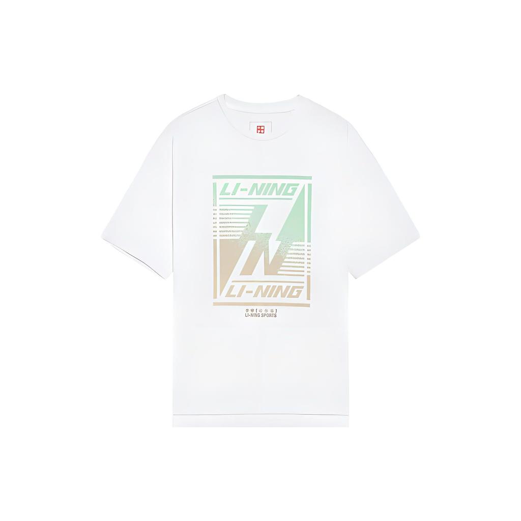 Футболка мужская с коротким рукавом и круглым вырезом Li Ning Pattern Printed, свободная, белая AHSS127-1