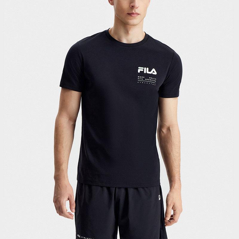 Fila Мужская футболка с коротким рукавом и круглым вырезом American Vintage Fitness с принтом логотипа, топы, глубокий черный A11M321108CBK