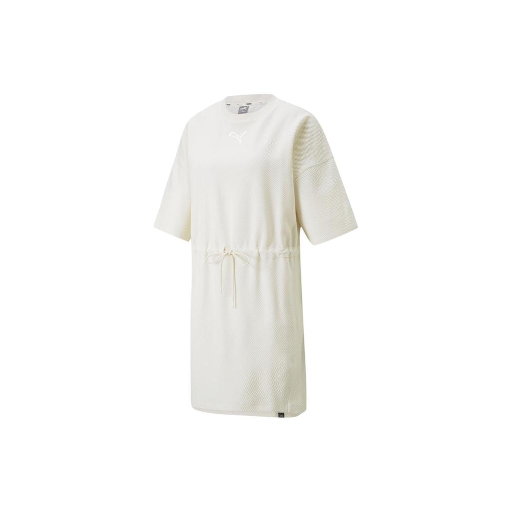 Puma Однотонный вышитый логотип с круглым вырезом и коротким рукавом, платье-пуловер, женские платья, бежевый цвет 670955-99