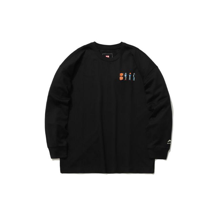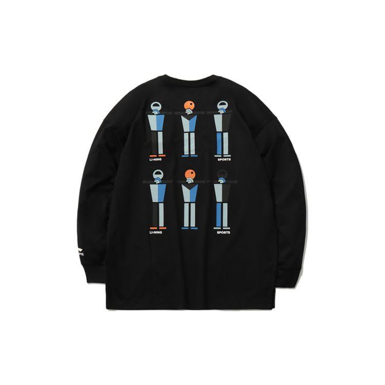 Li Ning Sports Fashion Series Свободная повседневная футболка с круглым вырезом и длинным рукавом для мужчин, черные топы AHSR387-2