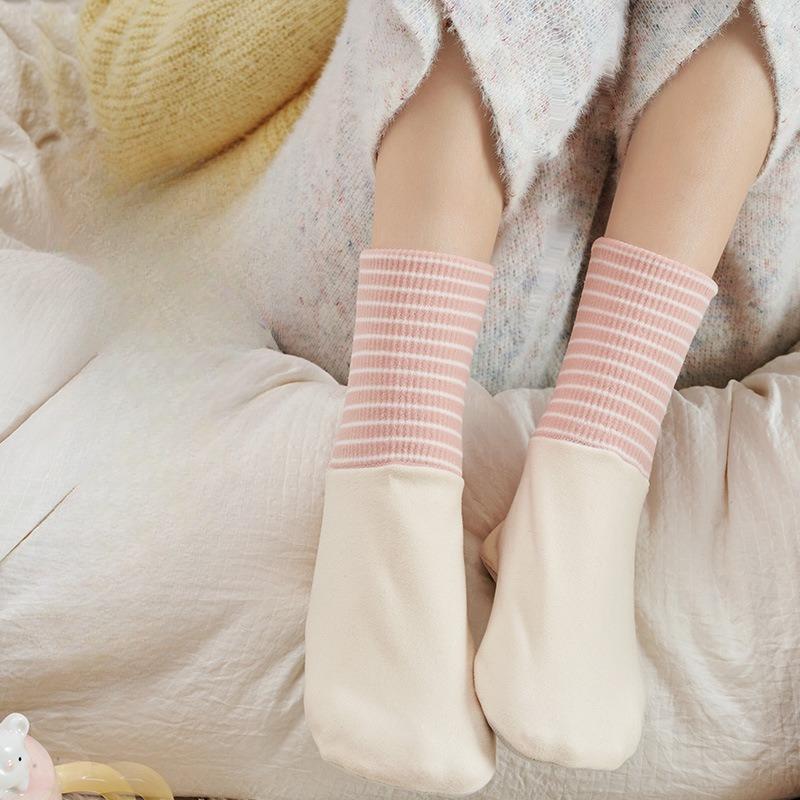 Носки для дома с кондиционером, Полосатые Полынные Свободные, Влагоотводящие, Не скатывающиеся Женские Носки до середины икры, Теплые Носки для сна